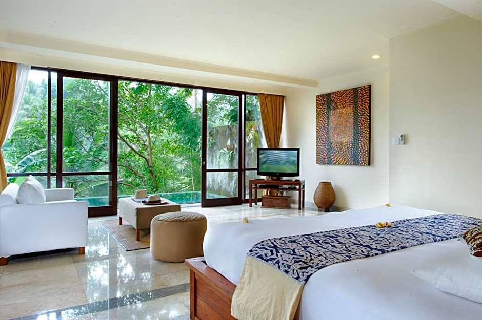 Elegantemente projetado pensando no seu conforto, o resort apresenta quartos belamente decorados com diversas comodidades modernas. Cada quarto oferece vista para o jardim e facilidades como ar condicionado, entrada privativa e uma kitchenette. Seja desfrutando de um relaxante banho na banheira de hidromassagem ou apreciando a vista da sua varanda, o Komaneka at Bisma Ubud é o oásis perfeito para sua estadia em Ubud. Preços a partir de $205, garantindo uma experiência luxuosa do início ao fim.